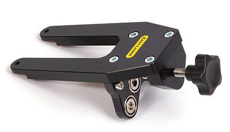 幅10mm、4つの強力な磁石が付いたブラケットで、直接フランジまたはカップリングの端面に素早く取り付けられます。数秒でしっかりとした安定したセットアップを実現したい場合に最適です。イージーレーザー社が最も多く販売しているオプション治具です。